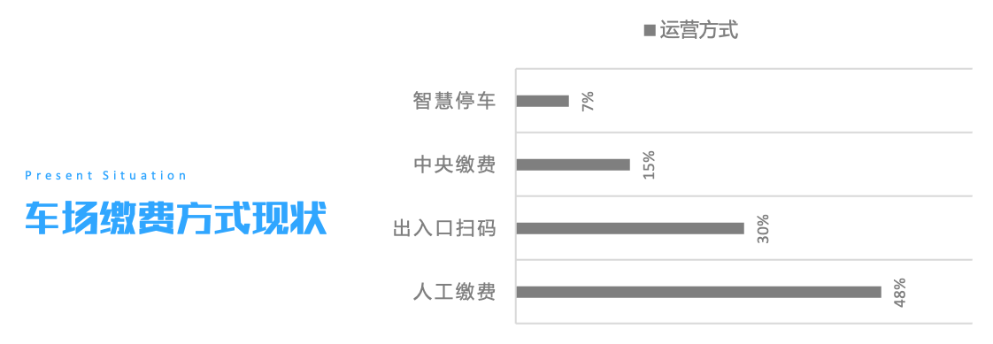 当下,多数商业地产停车场仍处于较为原始人工缴费状态,车辆出场通过现金或扫码枪等方式收取停车费用,部分停车场已具备扫描二维码缴纳停车费,中央缴费处于初发展阶段,已完成智慧化改造的商业地产停车场项目屈指可数。